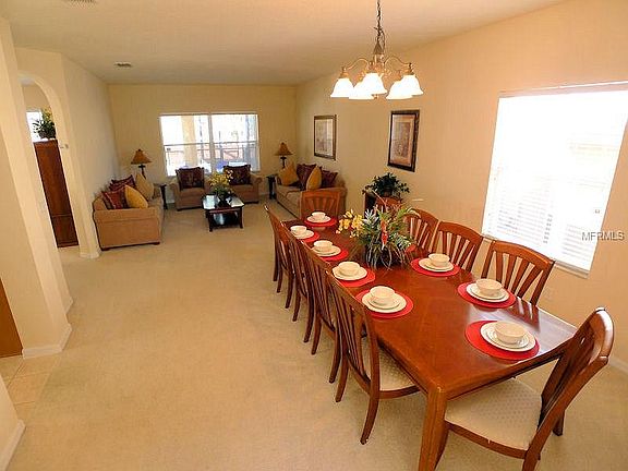 Beautiful large pool and spa home in desirable Championsgate area gated community. Well located, about 15 minutes to Disney, 5 minutes to I4, and about 5 minutes or to shopping and dining. The home is offered furnished and boasts five spacious bedrooms, one of which is on the ground floor with an adjacent bathroom. Master bedroom benefits from huge private balcony overlooking the pool. A perfect spot to end a busy day, or to enjoy watching a sunrise with a cup of coffee. This home has an exceptionally "livable layout", with just the right balance of private areas and room for the whole gang. Spacious kitchen with breakfast bar and Corian countertops opens into the family room. Lots of room for multiple cooks to prepare food while still being part of the fun. Nice roomy living room and dining room for special occasion meals. Currently a very successful vacation home. If the new owner would like to rent to vacationers, there are lots of bookings in place. If you want this to be your forever home, the bookings will be moved for you to move in right away. The sunny pool area benefits from having no rear neighbors, so enjoy more privacy in the pool and spa. This house really is exceptional, so book your showing today.