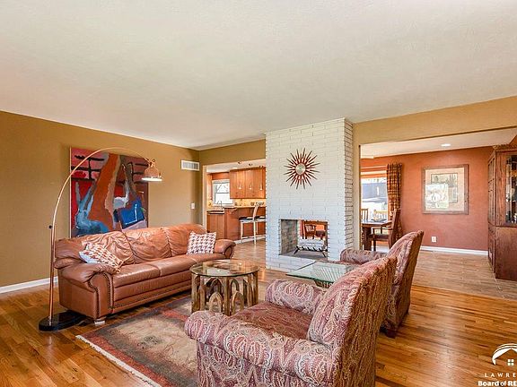 Desirable Hillcrest location within walking distance of KU, Hillcrest Elementary, the Merc, and downtown. Extensive updates make this a mid-century modern home with the emphasis on modern. Unusually open design for the age of house with see-through wood-burning fireplace. Hardwood and porcelain tile floor throughout. Full basement with cabinets, work areas, and potential for refinishing. Nice level backyard entirely privacy fenced. Friendly neighbors, friendly community-minded neighborhood association.