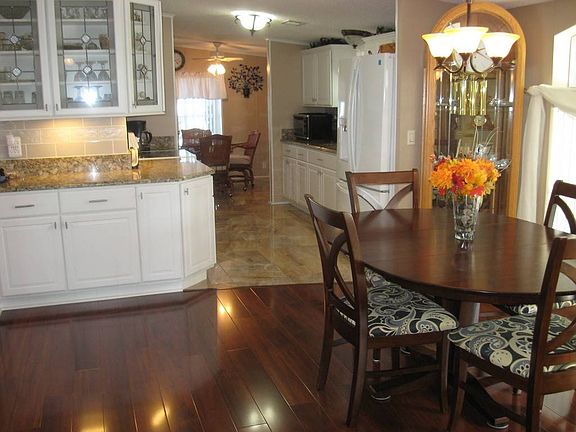 WOW!!....$88,900............Beautifully Updated on Great Corner Lot....Absolutely Gorgeous!! This beautiful home (inside and out!) is located in Four Lakes a 55 plus gated community with homes on lot leased land...... Here you own the home, but not the land...... Paying monthly lot rent of $609.53 give you and your guest access to the amenities of the community............. It features a bright...open...split floor plan, tape and texture, 2 bedrooms, 2 baths, eat-in kitchen, beautifully decorated and it comes mostly furnished.............. The spacious living room has newer carpeting and is open to the dining room with cherry laminate flooring............ The eat-in kitchen has granite counter tops, tile backsplash, loads of storage, pantry, and gorgeous ceramic tile flooring...... It also features a 2018 Kenmore Elite three door refrigerator with water and ice dock, glass top stove, built-in microwave, and a Bosch Dishwasher (very quiet)............. The large master bedroom has a super spacious walk-in closet and French doors lead to the remodeled master bath with large tiled walk-in shower, his and her sinks and an abundance of cabinets............. The second bedroom has, not one...but two closets (yes, that is a king size bed you see in the picture), and second bath has been beautifully updated............. The 11'4" X 14'8" Florida room features laminate flooring, glass windows, heat and air and leads to a screened 14'8" X 9' lanai............. This home is located on a large corner lot and the extra wide drive leads to a 19'5' X 17'3" garage with lots of shelving!..... This is one of those homes you have to see in person to appreciate just how lovely and updated it is.