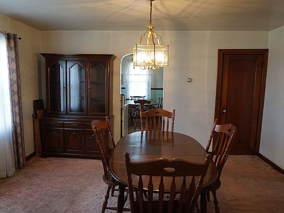 This is a charming single family home on over one acres of land. It has three - four bedrooms, two baths with full basement, new 2 car garage (15 years old) with workshop and out buildings that are great for storage. It has beautiful hardwood floors throughout, new windows (last 5 years) and a newer furnace and water heater. A spacious front porch and back porch makes this a great house for a new family with kids.