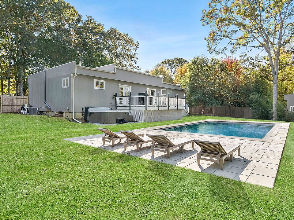 Privately located down a 450ft long driveway this property offers an immaculately reconstructed main house with a legal dethatched guest cottage. The main house has 3 bedrooms, 2 1/2 baths, open living room, fireplace, dining area, CAC and a private outside deck. There is a new heated pool and jacuzzi. The legal guest house offers a full kitchen, living room, dining area, 1 bedroom,1 bath, laundry room and an outside brick patio. Easily accessible from the west and just 5 minutes to Southampton Village shops and restaurants.