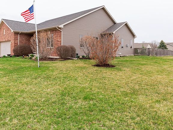 FIRST CLASS QUALITY-BRACKMANN BUILT CONSTRUCTION! PREMIUM CORNER LOT W/MANY UPGRADES! Enter in through the covered front porch & notice the beautiful hardwood, 2 bed + Den (can easily be converted to a 3rd bedroom) Kitchen boasts 42" Maple Cabinets w/under cab lighting and Corian Counters w/ Breakfast Bar & integral kitchen sink! Stainless Steel Appliances!! Vaulted ceiling family room off the kitchen, relax by the cozy fireplace! Lovely master bedroom w/large walk in closet & master bath w/abundant storage. Nice size bedroom with additional walk in closet, recessed lighting and ceiling fans located throughout the home. Family gatherings will be a hit with huge full basement, w/full bath that is partially finished and a work room for projects with tons of storage space. Beautiful french doors lead you to lovely brick paver patio and large backyard with gorgeous landscaping! Nothing to do but move in and call it yours today! Note: Pool/ping pong table & fountain are negotiable!! Hurry!