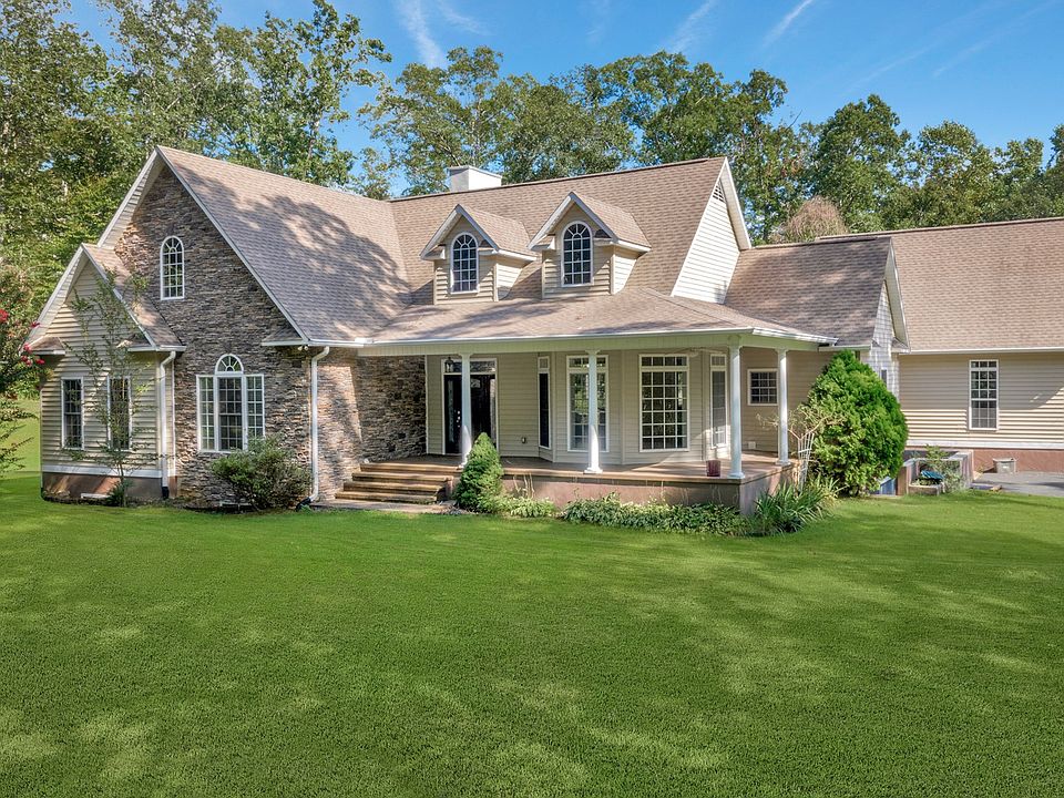 Brick home for sale outside of Lexington Tn 9+acres, 5BR, 3.5BA & over 5,000 sq ft. Home is constructed of ICF solid concrete walls. Exterior walls have a R-value of 50+. Ceilings are trayed, vaulted & coffered. 20 Ft. hand laid Kentucky flat stone fireplace in Hearth Room. Kitchen is laden w/two levels of countertops, professional Jenn-Aire appliances. Cabinets are beautiful honey glazed maple w/full overlay doors & oversized. Finished basement has rec. bonus, kitchenette & shop. 2 car garage & bonus room