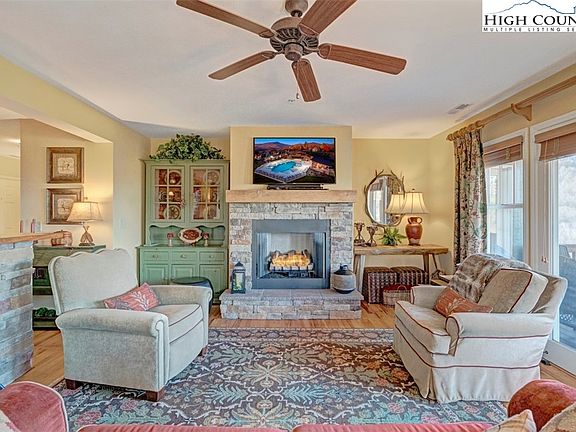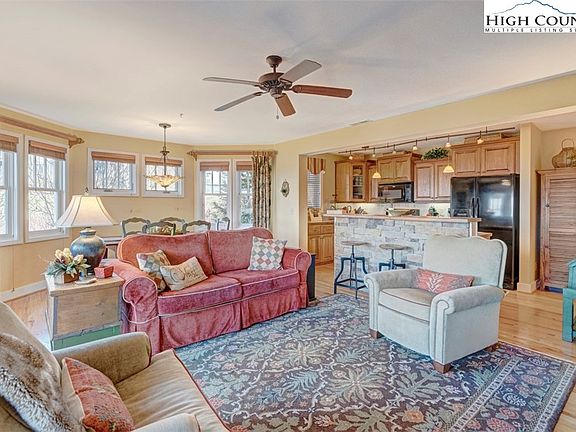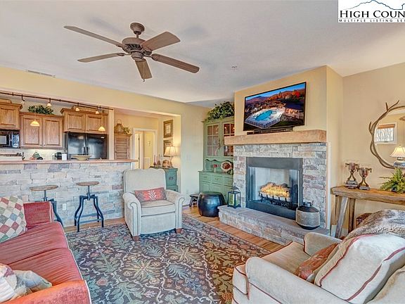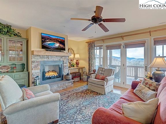 Beautiful 2BR/2BA Wintergreen on the Ridge with expansive long-range layered mountain views! This home was professionally decorated by Tatum Interiors and is being offered fully furnished and is ready to be enjoyed. Interior finishes include oak hardwood floors throughout the main living area, fresh paint, upgraded light fixtures, custom window treatments and a newly stained back deck with solar shades. The open living area features a stacked stone gas fireplace with raised hearth and cedar mantle, cozy living room furnishings, dining area and access to the covered deck to take in the mountain views. There’s ample storage in the kitchen with wormy cherry cabinetry, travertine tile backsplash and a breakfast bar with stone front. The primary bedroom has two spacious closets, plenty of windows, secondary deck access and an ensuite with ceramic tile flooring and a tub/shower combo. The guest bedroom is elegantly furnished and has its own full bathroom and can be more private for family and friends with a pocket door. Owners will have access to the new amenity center at The Summit at Echota which includes a spectacular outdoor pool and deck area, fitness facility and skybridge.