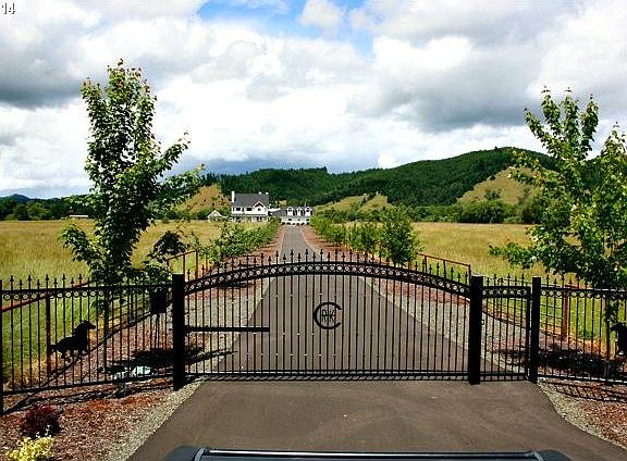 Carnes Ranch is located in the picturesque Scotts Vly area w/potential for vineyard & gorgeous landscape. Orchard & garden area w/36 ac of irrig rights. Currently set-up for cattle. Also includes a 2nd home-site. Custom home w/gourmet kitchen, exotic granite, elevator & more. 84+ acres is fenced for livestock + 60x100 barn & arena. Lots of paved parking, easy commute to Rsbg/Eugene. Guest quarters or home office/bonus rm w/full bath.