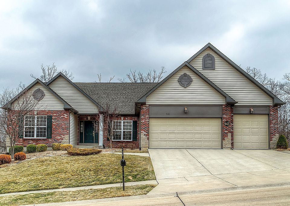 Spectacular 4+bedroom and 3.5 bath ranch home, situated on over 1 half acre, in the prestigious Southern Hills subdivision – The Legends. From the moment you drive up, you will notice the terrific curb appeal. This home boasts an awesome open floorplan with vaulted ceilings, warm neutral paint colors and nearly 4500 square feet of living space. Truly a move-in ready home! Entry Foyer opens to a terrific Office (that could easily be turned into a 5th bedroom) with custom crown molding, and a beautiful Dining Room offset by columns. Light-filled Great Room with large bay window and gas fireplace, opens to gourmet Kitchen with custom cabinetry, updated appliances, ceramic tile flooring, built-in planning desk and Breakfast Room. Luxury Master Suite offers a large walk-in closet and Masterbath with double vanity, jetted tub and separate shower. Also find a Laundry Room, Powder Room, 2 additional bedrooms (both with walk-in closets) and an additional full bath on the main floor. Partially finished walk-out lower level includes a 4th bedroom, large walk-in closet and plenty of additional storage space. The rest of the lower level has a deep pour, rough-in bath, and could easily be finished. Other features: attached 3 car garage, security system and in-ground sprinkler system. Relax outside on the enormous deck overlooking the park-like, private backyard, or on the patio below. This home is perfect for entertaining family and friends. Location could not be better – close to the neighborhood pool and tennis courts, easy access to rear gated entrance, and just a 5 minute drive to restaurants, shops, schools and major highways.