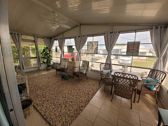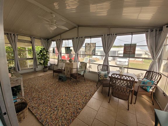 Come check out this beautiful 2-bedroom 2-bath home for sale located in it's a beautiful and Tropical Buccaneer States, a gated community. This great home includes a golf cart. Home has had a ton of updates in the last two years including installed mailbox, laminate water-resistant floors in bedrooms and living room, ceramic flooring in kitchen and bathroom, professionally painted, two and a half inch faux wood blinds in all windows, vinyl double pane windows installed, sliding door rollers replaced, light fixtures and ceiling fans installed, electrical keypad on front door, 3 inch louvered closet doors in kitchen and guest room, all new sinks, faucets, counters, mirrors and vanity raised 6 in shower nozzle replaced in master bath kitchen sink, faucet, garbage disposal dishwasher, microwave glass top range, pull out double trash can pull out drawers and cabinets vented Hood countertops with breakfast bar and stove cover.