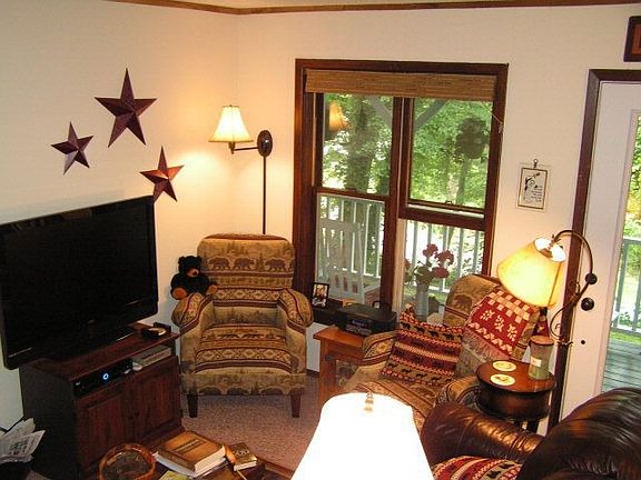 2 BR upstairs with 1.5 baths. open 30 by 15 family/dining room. Wood floor upstairs. Heat pump with backup propane and gas WH. Deep well with 2 stage filtering system. Walkout finished basement with 1 BR, 1 bath, interior storage room and workbench with washer/dryer. Fully screened 8 by 40 porch upstairs. Unscreened porch downstairs. Gas hookup for fireplace downstairs. Laminate floors downstairs with tiled bath.