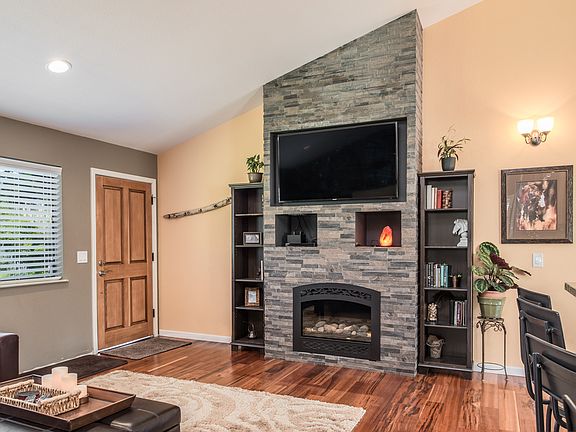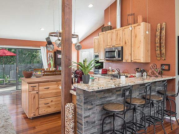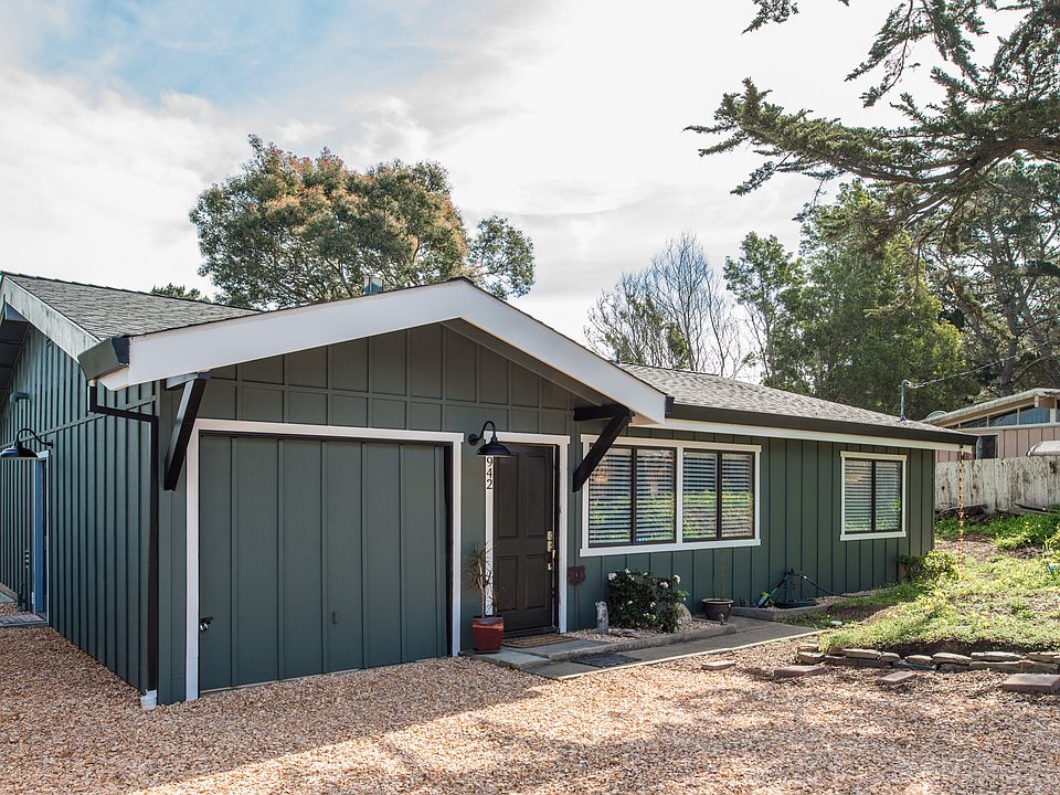 Substantial remodel completed in 2013. Located on a special lot that backs up to open space so no one can build behind you for total privacy as well as generous views of the ocean and bay, this darling remodel with make you "oooh and aaah" when you walk in the front door. Main living area of living room, kitchen and dining is very open with high ceilings, beautiful hardwood floors, alder cabinets with granite counters, copper sink and lots of light. Stone fireplace with builtin tv and high ceilings make this home feel much larger than it is. Bathroom beautifully remodeled as well with granite counters and tile floors. Generous back and side yards.