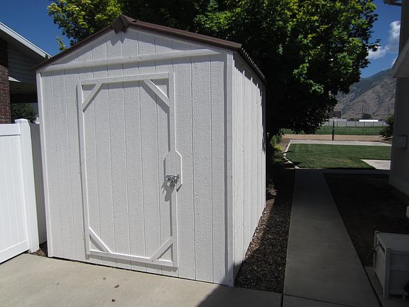 Contemporary four-level split design features maple hardwood floors, vaulted ceilings, two-tone paint in neutral colors, and great storage throughout. Central air, soft water, automatic sprinkler and drip system, plumbed for central vacuum. Large beautifully landscaped yard with mature trees and plants, including five peach trees and one cherry tree. Large grassy area, sports court, sunken trampoline, and garden space. Roomy kitchen has a raised center island, solid surface counters, built-in convection oven, microwave, and gas cook top. It also has a large pantry, maple cabinets, large eating area, and walkout to redwood deck. Laundry room has a built-in broom closet and utility sink. Spacious family room features a gas fireplace, custom mantle, and double doors leading to backyard. Master suite has walk-in closet and large master bath complete with a Jacuzzi tub. Additional bedrooms are generously sized with plenty of closet space and closet organizers. Garage is extra wide (2.5 car) and includes a workbench and overhead storage space. Includes concrete for additional parking and a large shed (8 ft. by 10 ft).