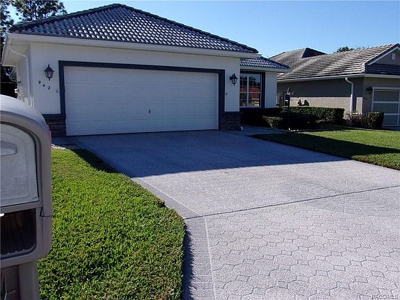 WELCOME TO THE NEIGHBORHOOD AND ENJOY THIS MAINTENANCE FREE 2 BEDROOM PLUS DEN TERRA VISTA VILLA. Fully paved driveway and entry lead to an impeccably maintained open floor plan. Continuous tile flows throughout the main living area with carpeted bedrooms. Built in entertainment center lends to extra floor space for furniture. Kitchen and eat in dining area house an added transom window for extra sunshine. Sliding doors tuck away to a spacious lanai with a private in ground pool, two retractable awnings add extra shade while a natural hedge adds privacy. Exclusive membership to the prestigious Citrus Hills Golf and Country Club is part of your lifestyle! Gated