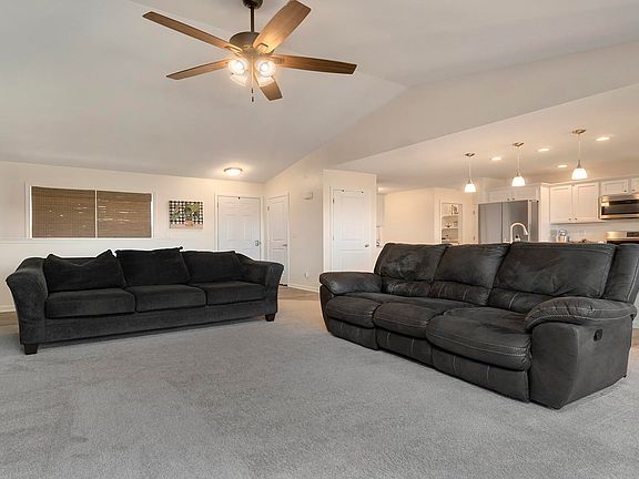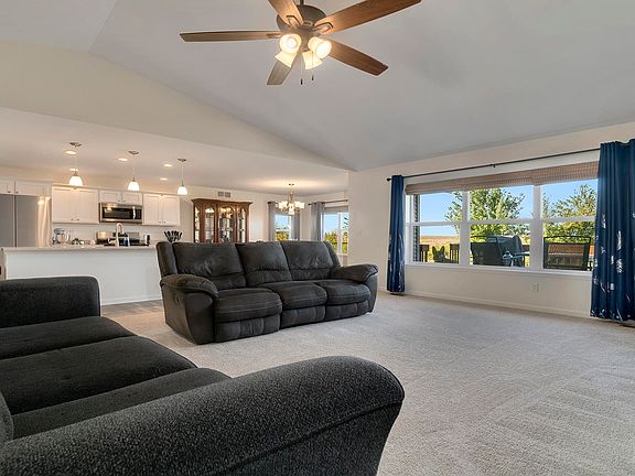 If the beautiful country views don't get you, the gorgeous home with open floor plan will! Completed in 2022, this 3 bedroom, 2 bath ranch with great room, breakfast bar and dining area provide the perfect feeling of "home". Natural light streams through the large windows into the massive living room with vaulted ceilings. Kitchen has ample cabinets and easy access to two functional pantries and a "drop zone" for coats, shoes, bags or backpacks. The granite counters are stunning, and the massive island is ideal for food prep and seating. Stainless steel appliances complete the functional kitchen. Main floor laundry with washer dryer, and nice cabinets for storage and convenience. The primary bedroom suite boasts a large bedroom, two walk-in closets and bathroom with double sinks and roomy shower. 2 nice sized bedrooms and another full bath are located on the other side of the home providing privacy for all. Outdoor space can be accessed from the deck. Exterior of the home has professional landscaping and a lovely fenced in yard. 3 car garage with large black top driveway. Full basement with egress window offers endless options for living space or a bedroom. Desirable location minutes from I39, this is a wonderful opportunity to LOVE your new HOME and where you LIVE!