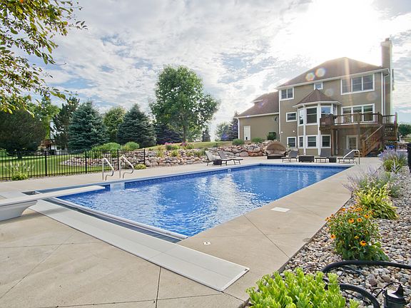 NEW LISTING WITH IN GROUND POOL! 942 Wynstone Drive, Jefferson, SD Located within the beautiful gated Wynstone community. Open concept in the living area and kitchen area plus, you can walk out and enjoy the fire pit and make some smore's! There is a main floor office/den, dining room (currently used for a toy room) half bath and MAIN floor laundry! Upstairs has 4 large bedrooms and 2 full bathrooms with a very spacious master suite. The finished lower level has a 3/4 bathroom, a great bar are, fireplace and sliders that allows you to walk out to one of the most impressive backyards you will find! A beautiful 20x50 salt water pool complete with an automatic cover and a new slide. The spacious deck area is perfect for sunning and visiting while enjoying the incredible landscaping. This home offers you view and backs directly up to the nature preserve.
