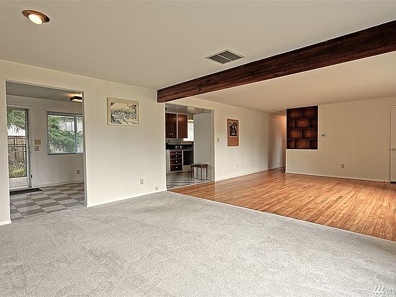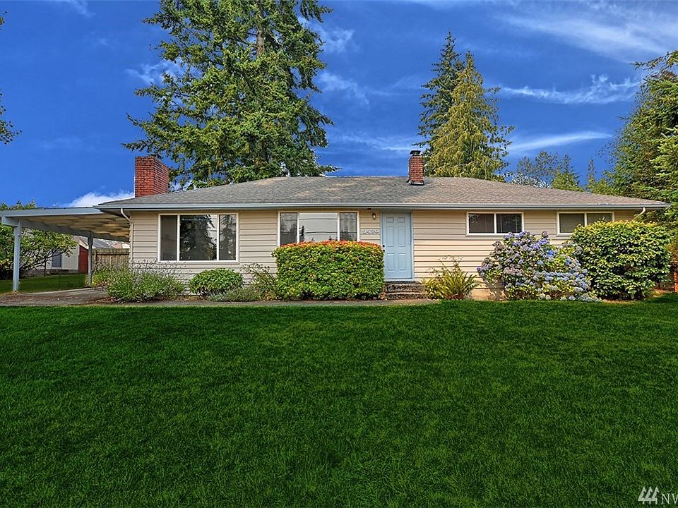 Classic mid-century Rambler on huge .37 acre lot in Eastmont. Large bright living room with brick fireplace and hardwoods in much of the home. This home is ready for your updates or just move in. Mature landscaping with great usable yard space, deck and a large detached 450 square foot shed. Newer windows and gas furnace for a comfortable home. Close to freeway access, shopping, Costco, Boeing, and other services. RV parking, privacy and convenience all with a cute house in nice area.