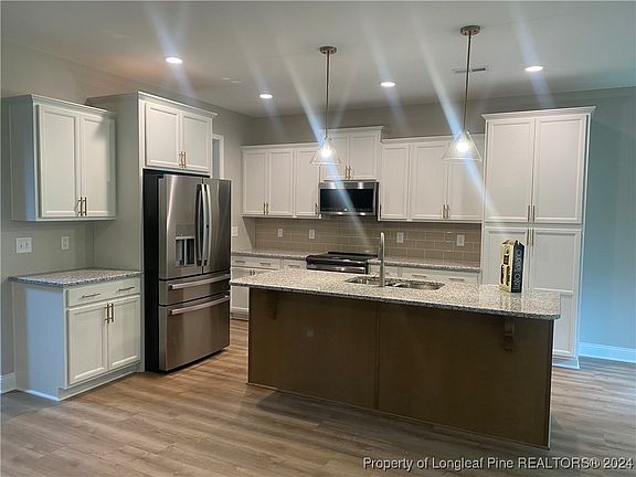 Welcome to the Kinsley floor plan. This beautiful 2 story home offers 2,717 sq ft of living space, a 2 car garage, front porch, back screened porch, and walk in unfinished attic space. The master bedroom is downstairs with a large tile shower in the bathroom and his and her closets. The great room is prewired for surround sound and flows into the open concept kitchen and breakfast nook. Beautiful granite countertops top the kitchen cabinets and island. The formal dining room includes crown molding and chair rail. Coming in from the 2 car side entry garage you will find the laundry and mud room. Upstairs you will find 2 traditional bedrooms, a smaller room that could be used as another bedroom or a study, full bathroom, and a large bonus room connecting to walk in unfinished attic storage above the garage. Builder will include a matching refrigerator and window treatments with a full price offer. This is a new construction home estimated to be completed by September 1, 2024.