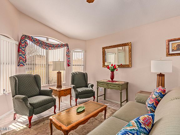 Discover your dream home in the charming Mesquite Canyon neighborhood! This beauty provides a 2-car gar & an RV gate. Inside, a combined living & dining room greets you, complete w/ tile flooring, vaulted ceilings, & a bay window. The desirable great room w/ a back patio access is designed for entertaining! The open-concept kitchen has recessed lighting, plenty of cabinets, stainless steel appliances, a prep island w/ a breakfast bar, & a breakfast nook ideal for quick meals. The primary bedroom has a walk-in closet and a private bathroom w/ dual sinks. On top of 3 beds you also have a sizable den that can be used as an office or extra bedroom. Easy-care backyard displays a covered patio, artificial turf, & citrus trees. A 2.5 car gar includes plenty of cabinets! Pride of ownership shows!