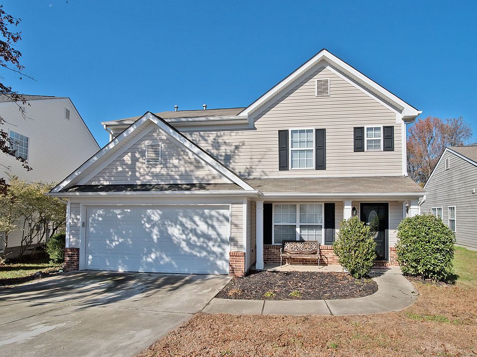 Charming, 2 story home with 2 car garage & covered front porch in highly desirable Moss Creek community! Open plan on main level featuring Dining Room with wainscoting & crown molding & Great Room with gas fireplace flowing to Breakfast area & Kitchen with granite & stainless steel appliances (installed in late 2018). Master Bedroom on upper level with new carpet, vaulted ceiling (ceiling fan) & walk in closet! Master bath with spacious garden tub & separate shower! Secondary Bedrooms with new carpet & ceiling fans! Spacious, Fenced back yard! Community features include: 4 pools (1 Olympic sized), Club House, Tennis Courts, Basketball Courts, Playground, Pickle Ball, Fitness Center & Carolina Thread Trail (walking trails)! Close to grocery, restaurants, shopping & Local Concord airport!