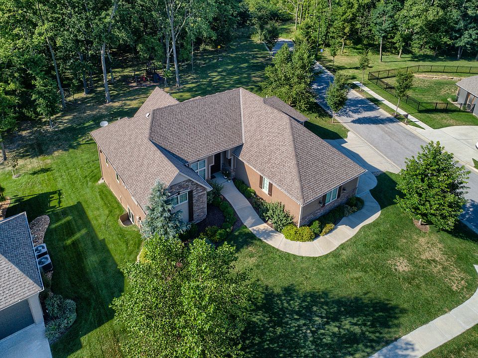 Stunning, custom-built home w/tons of upgrades on large, corner lot that backs to mature trees! Walk in & admire the soaring, beamed ceiling & floor-to-ceiling stone fireplace! 1 of 4 fireplaces throughout! Gorgeous kitchen w/copper sink, gas stove w/hood, & under/over cabinet lighting! Main floor MST features huge master closet w/built in vanity/dresser, fireplace & MST bath w/heated floors! Zoned surround sound throughout incl. garage! Screened deck w/fireplace & media station! Patio w/built in stone grill!