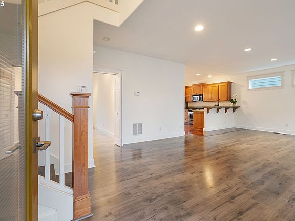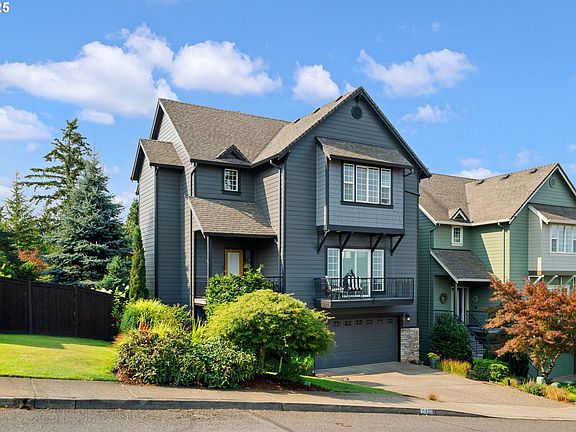 Spectacular views from this stunning home situated on the hills overlooking Portland. This Happy Valley beauty features 4 bedrooms PLUS a large and bright office/den/flex room. Other standouts are the very large open living room, balcony and deck off that living space, 3 1/2 baths, and a patio off the flat, entertainment-friendly yard. What else? I'm glad you asked! The second floor living level also has a gas fireplace in the living room, open concept kitchen with prep island and eat in bar, and a sunny dining area. The bonus room on the same floor could be an office, craft room, kid space... whatever you dream up. The primary bedroom on the third level has large closet space, vaulted ceilings, room for a sitting area, and both a walk-in shower and tub in the bathroom. The ground floor has an exterior entry, bedroom and bath, making for a great independent or multigenerational living area. And the attached 2 car garage is actually large enough for 2 cars. Really! You might not realize it from the front, but the back yard is level and relatively large for the area, making it great for gardening and entertaining. It includes a covered lower level patio for relaxing and upper level deck for entertaining and views. It's a wonderful home you and your loved ones can grow into this spring!