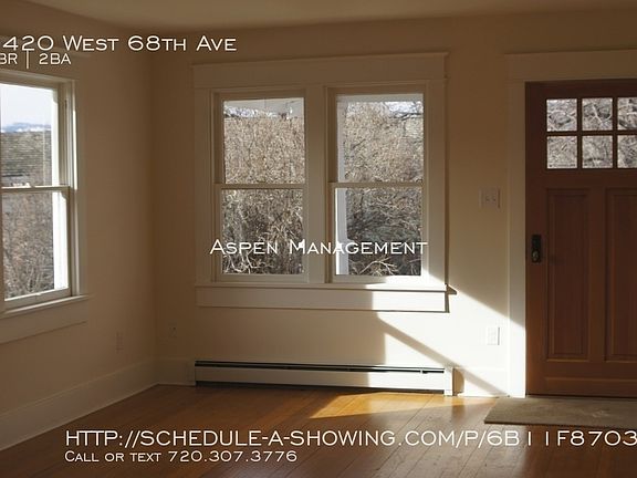 What a gem! This historic home features 3 bed and 2 bath and is at the end of cul-de-sac in a quiet Arvada neighborhood. The entire house has been fully remodeled with new kitchen appliances, granite bench-tops, original wood floors, sparking new custom bathrooms and a swamp cooler. Huge upstairs master bedroom with ensuite, walk-in closet, swamp cooler, private balcony and stunning mountain & lake views. 3rd bedroom could also make a great home office. Separate laundry with washer & dryer and extra storage room in unfinished basement. Large backyard with sprinkler system. Beautiful established trees and space for a vegetable garden. Close proximity to shops and restaurants and schools. This charming home will go fast, so call now to schedule your private tour. Sorry, no cats. Ask about our dog policy Temporary property tour conditions: Beginning May 8th we will be conducting in-person property tours with the following requirements: 1. All persons touring the property must wear gloves and a face-mask 2. Only Aspen employees will touch any interior surface. 3. All persons touring the property must stay together. At the discretion of Aspen Management, tours that do not adhere to these requirements will be halted or canceled. Thank you for your patience and understanding. Back Patio Disposal Electricity Evaporative Cooler Front Porch Irrigation Views Washer/Dryer In Unit