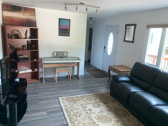 3 bedrooms, 2 bathrooms, and one car garage with driveway for extra parking. 5 miles from the airport and walking distance from shopping areas and trails, with quick access to Minnesota highway, which connects you to downtown and many parts of the city in no time. The property is located in a quiet residential areas off of Dimond and Arlene on the south side of Anchorage. Great location for itinerant healthcare providers, airline pilots, transitioning military families or other short term contracts. It's about 15 - 30 minutes from all the hospitals in Anchorage, about 20 - 30 mins from JBER and 10mins to the airport. The home is also located near two wonderful schools, in case you are on a longer contract over the school year. No stairs - other than three steps up to the front door. Private backyard and fenced yard where one can sit and enjoy our beautiful Alaskan weather. Amazing Mountain View and view of lake. Additionally, if you love gardening, there are two garden beds for summer planting. Located near trail systems and shopping centers such as Fred Meyer and Costco. All utilities and furniture are included, including high speed unlimited internet. Filtered water throughout the whole unit. The unit is not furnished. Will not be available for showing till July 1st. 6 month lease term, but open to longer.