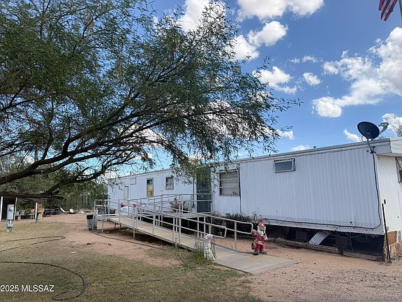 FIX-UP OPPORTUNITY SOLD AS-IS!! This find is a diamond in the rough. Great potential with some TLC you can bring back to life nestled in the beautiful Arizona desert with gorgeous night starlit sky views. This is a 12x64 1970 year built, 3 bedrooms, 2 baths manufactured home. Large lot completely fenced-in with double access entry at west and east wing, permitted in 2014 added a spacious carport 18x22, professionally installed wheelchair accessible metal ramp leading to main entry of the home. City water and Paved roads maintained by Pima County. Don't miss out! Buyer to verify all information.