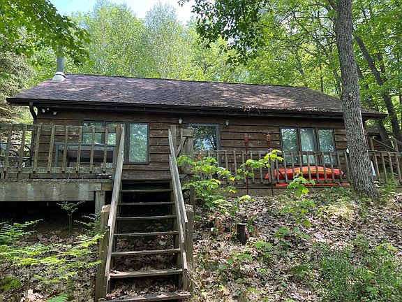 Witches lake! This 3bd 2bth home sits on 1.75 wooded acres with a sandy shoreline at the lake and privacy! This property features a huge 26x32 garage with a finished bonus room above it. Plenty of room to store your boats and toys, not to mention the extra space for guests in the bonus room above the garage. The home itself features an open concept kitchen, dining and living room with a wood burning stove to keep warm in the winter. A main floor laundry and bedroom finish off the primary living space. Upstairs you'll find an additional two bedrooms and full bath for your guests to stay. Stepping outside you'll enjoy a wooded private setting overlooking peaceful Witches Lake. Witches Lake is 32 acres, 40ft deep and features panfish, bass and walleye per the WDNR. There's plenty of room at the sandy shoreline to build a campfire and hang out on a summer day. Located less than 30 minutes to Minocqua in the heart of the Northern Highland State Forest! Home is being sold "as is."