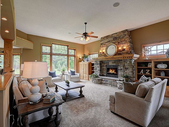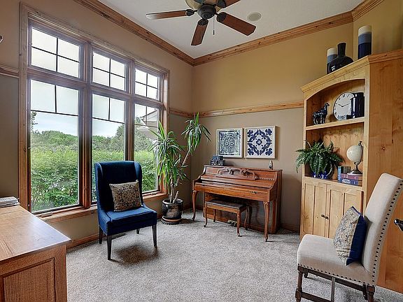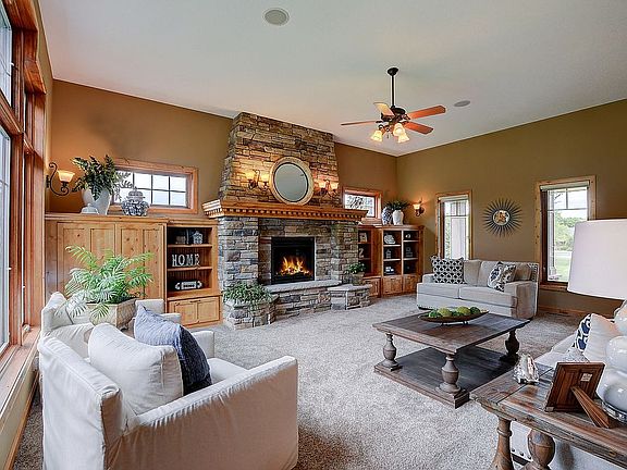 MAIN LEVEL Great Room/Living Room Entering this gorgeous home you are greeted by a large foyer and the great room. It has an open concept and is open to the dining room and kitchen with plenty of space and light, gas fireplace w/ stone surrounds that reach floor to ceiling, stunning 11 foot ceilings, and plenty of built-in book shelves with storage. Dining Room The dining area has plenty space of its own conveniently located adjacent the kitchen and Great room. It contains a granite countertop buffet w/ with hardwood built-ins, large windows, Alder hardwood floors, and a walk-out to a 3-season porch. Kitchen A massive eat-in kitchen open to the dining room and great room is loaded with custom cabinetry, granite counter tops, chef’s sized center island, slate back splashes, stainless steel appliances, double ovens, and a walk-in pantry. Den The den is a quaint, private room with French doors and transom windows, large windows looking to outside, 11 foot ceilings, lots of built-ins for storage, and cove moldings all the way around. Master Bedroom Suite The master bedroom suite has large windows allowing for plenty of light, a huge walk-in closet with built-ins, vaulted ceilings, a connected private full bath and a walk-out to the deck! The master bathroom features tiled floors and shower (floor to ceiling), a tile surround jetted tub and a beautiful double sink vanity. 3-Season Porch A stunning 15’ x 12’ 3-season porch is off the back of the dining room and kitchen. It boasts large windows all around, knotty pine, a ceiling fan, walk-out to a private deck and a gorgeous landscaped patio area with an outdoor fireplace. Laundry The laundry room has plenty of space for all of your needs. It contains tiled floors, a large sink, built-ins for storage, a built-in ironing board, and even a walk-out the backyard! Mudroom/Half bath The mudroom is off the laundry room and garage and has plenty of built-ins for storage, tiled floors, and a beautiful adjacent half bath! UPPER LEVEL Study A bonus room! A quiet 19’ x 8’ area after you walk up the gorgeous, wide stairs with the possibility to use it as anything your imagination wants. There is a convenient ¾ bath with tile floors and a fully tiled shower! Bedroom 2 The bedroom has plenty of windows allowing for natural light and is carpeted. Office/Hobby Room A unique and very useful room as an office or your favorite hobby. Custom built-ins surround the entire room as do windows allowing for plenty of light. LOWER LEVEL Family Room – Game Room – Wet Bar Area Welcoming you into the lower level is the family room, wet bar area, and game area all open to each other! All three boast plenty of room for all entertaining needs. The family room has a gas fireplace with stone surround, carpeted, and recessed lighting. Next to that is the wet bar area with plenty of room for a party. Complete with refrigerator, plenty of cabinet space, and a beautiful wood bar top. The game area is also open to the bar area and family room and is open for whatever you want it to be! Bedroom 3 & 4 The 2 basement bedrooms are next to each other and conveniently located next to a full bath. Both bedrooms have large closets, windows, and are carpeted. The full bath is tiled, has double sinks, and a separate area for the tub and shower! Furnace Room – Sauna – Workout Room These 3 rooms are all connected to each other through the family room. The furnace room is a massive 25’ x 13’ and continues onto an 8’ x 7’ sauna and then on to a 14’ x 11’ workout room!