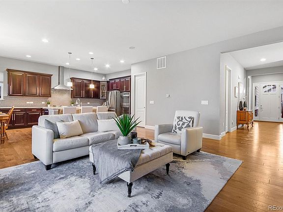 *Seller Offering $9,000 Concession Incentive with Full Price Offer* Welcome home to picturesque NW Arvada & the master planned community of Candelas. This stunning, Richmond American home features 5 bedrooms, 3 baths, office space, 3 car garage and so much more! Step inside & you will appreciate all the attention to detail like the solid maple floors. The 1st floor offers an open floor plan with sweeping views of Standley Lake, downtown, the mountains and open space from the kitchen & living room. The gourmet kitchen offers stainless steel appliances, granite counters, range hood and plenty of cabinet and pantry space. The kitchen opens to the living room which enjoys bright, natural light, sweeping views and a stunning marble tile fireplace. Escape the day in your oversized Primary Suite with crown molding, bay windows highlighting the lake views and a 5 piece Primary en-suite with soaking tub, dual sink vanity and custom primary, walk-in closet. Guests will enjoy two ample size bedrooms which share a separate full bath. A large office with French Doors is also located on the main level. The home also features a large laundry room that has been personalized with utility sink, cabinets, walnut wood butchers block and shiplap. And we're just getting started! Head downstairs to the fully finished, walkout basement backing to a community greenbelt and trail. The basement features another 1700+ of finished space with 2 large bedrooms, 3/4 bath and its own Library! Hidden storage access behind basement shelving. Relax outside and enjoy the views from your Redwood deck or sit on the patio below and enjoy the gas fire pit and hot tub. Home has so many upgrades: structural floor, seller-owned solar, electric vehicle charging, upgraded electrical, concrete tile roof - no detail has been missed! Walk to one of two community pools and fitness centers. Close to multiple parks, trails, new retail and restaurants. More Interior Photos, 3D & Video Tour Available!