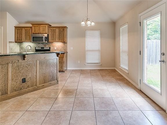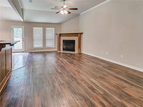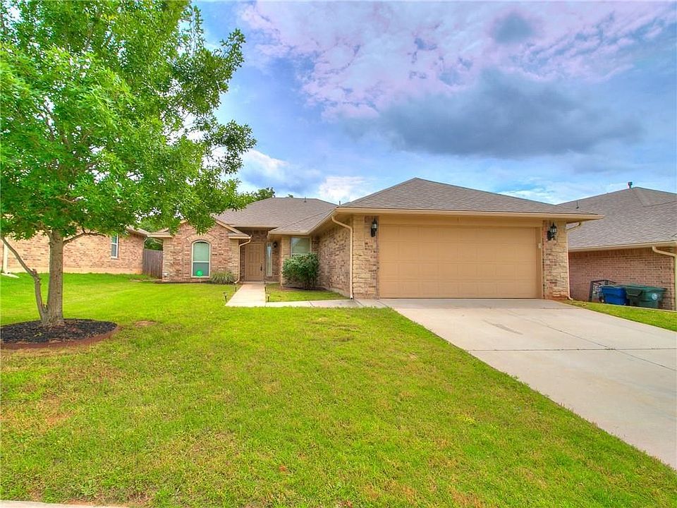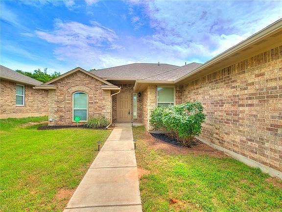 Rare find in Carl Albert schools! Clean and ready to move in!Freshly painted interior! Open floor floor plan,gas FP with logs. Bull nosed corners and arch doorways! Newer wood laminate floors are very nice! Tile in kitchen and baths! Two Dining area!Kitchen hosts granite,pantry,deep sink,gas stove,under cabinet lighting. Built in surround sound. Master bath has whirlpool tub,and large shower. Walk in closets! Lrg laundry room with folding table.Curb appeal with the added rock on brick exterior. Open patio! Come take a look at this one!