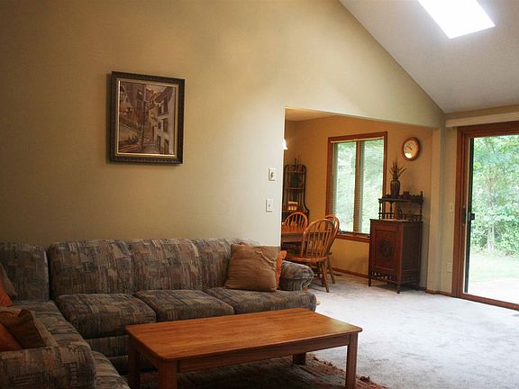 Accepting offers until 5:00 PM Sunday August 16th. Beautiful and well-maintained home on a cul-de-sac in Autumn Chase which is conveniently located near 469. You'll only be the second owner of this gem with its own private woods out back. The foyer entry opens into a beautiful great room with skylights in the cathedral ceiling, a plant ledge, and a wood-burning fireplace. The spacious master bedroom has lots of light with a cathedral ceiling, a 5'x6' walk-in closet, and a 5' long vanity in the master bathroom. Enjoy newer carpet and tile flooring (2019), a bump-out in the 2-car garage, high-efficiency Anderson windows, and 3 screen doors. Sale includes refrigerator, range, microwave, and dishwasher!