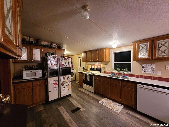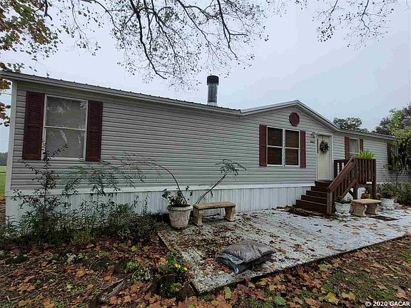 Rare find in SW Gainesville! Here is a well-kept 4/2 mobile home on 1 acre that backs up to a peaceful pasture. Cherry wood floors in the dining room and one bedroom, vinyl plank floors in the spacious kitchen. Large master bathroom with dual sinks, soaking tub, and separate walk-in shower. Covered back patio with pavers make for great outdoor entertainment. Large shed in the backyard with electric, for all your needs! This property is on well and septic, as well as Clay Electric, which means very low monthly utility bills compared to the area! This one won't last long!