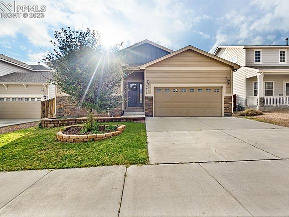 Come see this immaculate 4 bedroom, 3 bathroom, 2 car garage! This gorgeous home is fully landscaped front and back, auto sprinkler with fully fenced backyard, extended upgraded stamped concrete patio, with built Firepit for entertaining. You will love the gourmet kitchen with sprawling granite countertops, wood floors throughout, stainless steel appliances including Refrigerator, dishwasher, Oven/Range and microwave. Large walk in pantry with an overload of storage available with Laundry room off the kitchen that has additional storage area. The Granite Step up breakfast bar is so convenient when entertaining. Central AC, Security System and humidifier all have been added on. The Cozy main level living room is a beautiful open floor plan with solid hard wood flooring throughout. The primary bedroom on the main level with attached En Suite 5 piece bath with Garden Tub and Ceramic Mosaic tile shower is a true master retreat including an oversized walk in closet. Large family room in the basement, 2 additional bedrooms and full bathroom would be a wonderful private getaway for any guests. Don't miss out on this Fountain retreat centrally located in Fountain with quick access to Fort Carson, Colorado Springs and Peterson AFB with plenty of neighborhood parks, and walking/biking trails as well. You don't want to miss out on this wonderful home!