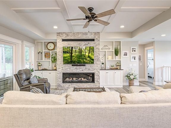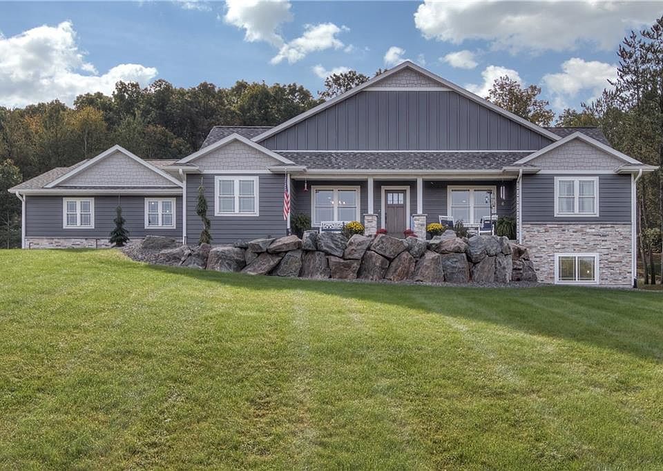 2021 PARADE HOME! Built by Pabich Homes, located in the highly sought after Hallie Ridge Estates; which offers a clubhouse, pool, sports court and more! You will fall in love with this modern design open concept living area, elegant kitchen with stainless steel Samsung appliances, custom cabinets, spacious island seating, hidden walk-in pantry & fireplace with built-ins. The main floor offers 3 bedrooms including a master suite with tile walk-in shower, main floor laundry w/office area, a large mud-room, 1/2 bath from the garage and a 3 season porch overlooking a private, wooded backyard. Fully finished lower level with family room, bar area, 2 bedrooms, full bathroom and plenty of storage space. Take a moment to just sit on the front porch and feel the peace and tranquility this home offers. All furnishings are negotiable, just move on in!