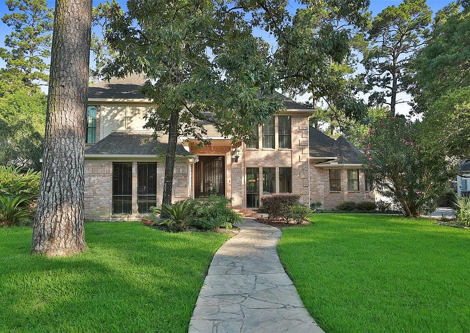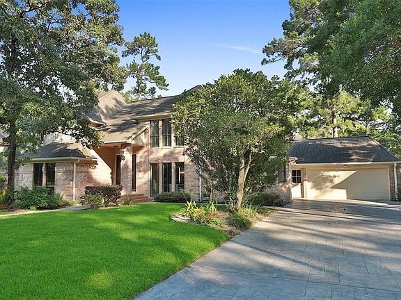 Set on a lot and a half on one of the prettiest streets in Champion Forest, this custom-built home is loaded with architectural details. Double doors open to a dramatic two story entry hall with a graceful curved staircase. From the entry there is a sweeping view of the light-filled family room and the pool beyond. A double-sided fireplace in the family room opens to the breakfast room as well. Imagine cozy family meals there in front of the fire during cooler months. The island kitchen has tons of cabinets, a walk-in pantry and double stainless steel ovens. A vaulted ceiling and a curved bank of windows are highlights in the kitchen. An inviting covered patio, complete with mounted TV, offers a great spot for morning coffee or an evening glass of wine overlooking the pool. Also downstairs is a stunning dining room, handsome home office and a spacious master suite with pool views. Upstairs features the game room with vaulted ceiling and beams, 3 bedrooms and two baths.