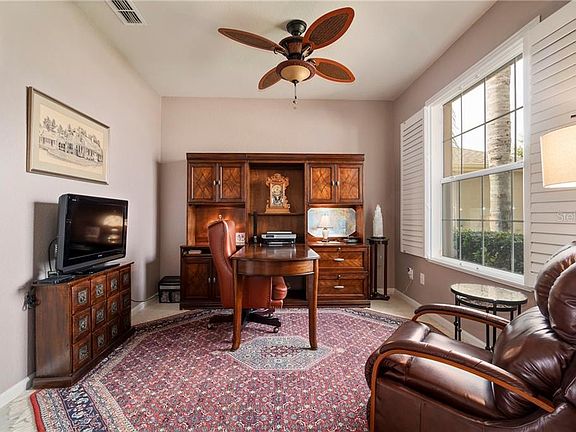 This DEL WEBB 55+ gated community has so much to offer! If a gulf course view is what you have dreamed of then Welcome home. This well maintained home with split 3 bedroom split floorplan plus a den/office has so much to offer. The living room opens up to the kitchen which has double sliding glass doors that open to the enclosed porch with vinyl sliders so that you never miss a view! The kitchen has a oversized eat in bar and plenty of space to entertain including an abundant of storage throughout the home. The 2 car garage offers additional golf cart parking. This home has so many upgrades which makes this home worth seeing. Schedule your showing today.