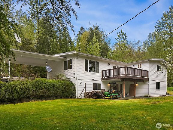 Welcome to your own River Valley oasis on just under 3 acres of land north of Carnation! Recent updates include metal roof, new electrical & plumbing and new siding. This house is light bright and airy! Stylish modern kitchen with stainless steel appliances and custom lighting, open shelving and live edge counter. Primary bedroom has its own ensuite bathroom and double closets. Upstairs has hardwoods and custom tile, throughout. Terraced, wooded and rolling, the land has great potential with fruit trees, creek frontage, lower acreage for a garden, and 2 20' containers for storage on 3 tax parcels. Flowering mature trees mixed with evergreens for privacy, plenty of parking for all types of vehicles. Easy access to both Carnation and Duvall.