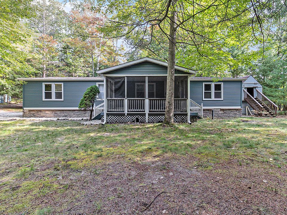 Nestled back in the woods yet just a half mile from both Lake Michigan and Portage Lake, this 3-bedroom, 2-bath home offers the best of both worlds peaceful seclusion and easy access to the water. Nicely updated throughout, it's ideal as a year-round residence or an Up North retreat. Enjoy morning coffee on the screened-in front porch, host gatherings on the spacious back deck, and take in the beauty of the wooded setting. With beaches, boating, fishing, hiking trails, and year-round recreation just minutes away, this property is the perfect Northern Michigan escape