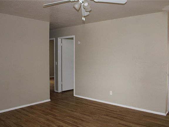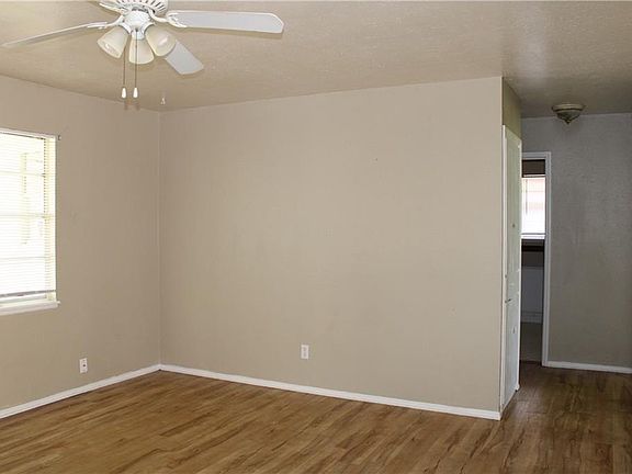 NEW roof will be installed prior to closing. There are granite counter tops in the kitchen and both bathrooms. Stove, dishwasher, pantry. Tile floors in kitchen and dining room. Sliding door to a nice, large patio. Plank flooring throughout the large living room and all 3 bedrooms. Ceiling fans. Linen storage, guest coat closet. New central heat & air unit was installed last year. 2 car garage feels very roomy. Buyer to verify schools.