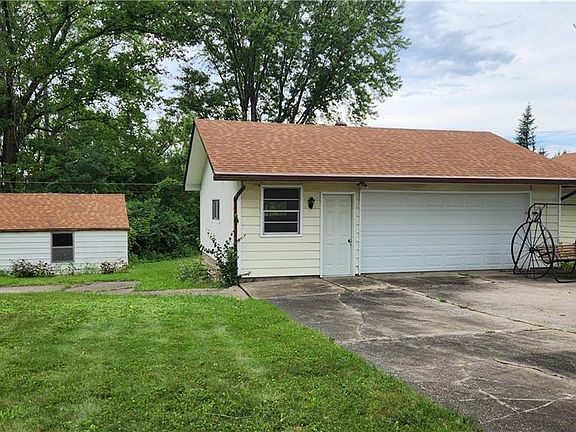 Good Bones!!! This house has a 2 year old roof, 3 year old furnace and air conditioner, and updated vinyl windows. The huge 2+ car garage that has lots of room for a workshop. 2 large sheds could fill many uses. Great yard with trees and a wooded area in back. Feels like a touch of country in town on this dead end road. New back deck. Extremely well insulated with 2 types of insulation. This open floor plan has lots of windows and a flexible use of the space. The large third bedroom has been opened up to the living room to serve as a family room. But double doors could be added or the wall restored to seal it off with full privacy. It still has the original door from the hall and closet. Great opportunity to own a home and build equity with some cosmetic improvements!