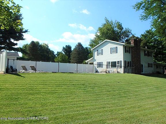 Excellent offering situated on 1.58 acres with Pine Lake access. Olivet Schools. House has 4 bedrooms/2.5 baths. Large family room with beautiful floors and a brick surround fireplace. Oversized primary bedroom. Many updates: remodeled bathrooms; some new floor coverings and carpeting; new sliding door; freshly painted; some new kitchen appliances; newer furnace and HWH; and more. Built-in pool with pool house and newer fencing. Invisible fence in backyard. 2 car attached garage. Three parcels have been combined. With over 350 Ft frontage on the channel to Pine Lake. There is also access to all sports Pine Lake at the end of the road. Pine Lake is approx 125 acres with mainly undeveloped shoreline. Conveniently located close to I-69, with easy access to Lansing and Battle Creek.