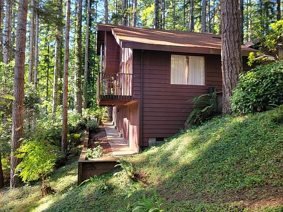 Beautiful Home Nestled high among giant tree's in the desirable Carlson Heights Neighborhood. Inspiring views from the Large windows in open concept family room, dining room, living room & Kitchen all filled with natural light and access to deck. Vaulted ceilings, large beams & Hard wood floors throughout. Kitchen has SS appliances, granite counters & pantry. Primary Suite with attached bathroom tub & shower. Extra large garage attached to the home, 2nd garage/work shop recently added to the property. Enjoy life on the Oregon Coast, gorgeous beaches, sand dunes, crabbing, fishing, hiking & Kayaking. Outdoor paradise!
