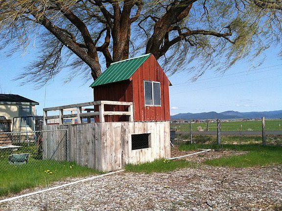 Just 4 miles west of town, full foundation, nice deck and front porch, wood and FAE heat, small barn/shop, equipment storage building, second septic with 2 RV hook-ups, 2 separate tax parcels total 8.41 acres, 5 acres with Lakeview Water District water rights in permanent pasture. Fenced and cross fenced. Large trees, garden area, fire pit, play structure. Close to golf course.