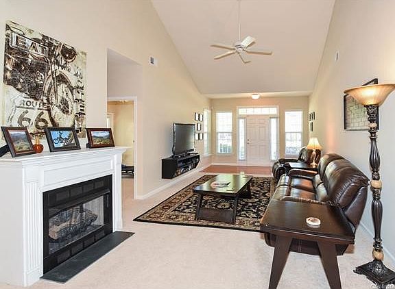 End unit- Two master suites/one on the main floor and one upstairs- Recent neutral paint/carpet in excellent condition- Airy floorplan w/ tons of natural light- Living room w/vaulted ceiling and ceiling fan- Main floor master suite w/sitting area, generous closets, dual sink vanity and garden tub - Covered porch- Kitchen opens to LR and all appliances included- Large first floor laundry rm- Spacious 2 car garage- Huge loft area with amazing finished storage room- Walk to Shopping and Dining