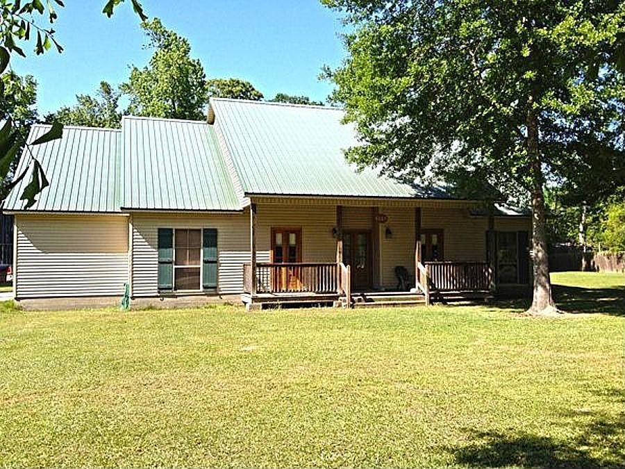 Welcome home to the perfect blend of country and city living! Not far from Range Ave but sitting on 2+ acres of land. You want space to enjoy life or just to store things, this is the home for you! A vintage barn has been reassembled on the property with a new long lasting metal roof on the main structure. This barn has a working bathroom and upstairs, with new deck and there are stalls for horses...and that's just lagniappe! The home also has a metal roof with walk-up attic off the spacious 2 car garage to make access to the things you store easy! Extra insulation and double hung windows makes this home energy efficient. Huge open living area with plenty of windows giving a view to the huge backyard where deer have been known to pass. Eat-in kitchen with large island and stove top also has a view to the great outdoors and the main living area. Makes entertaining easy! Gorgeous claw-foot tub graces the master bath while the other full bathroom is huge with a separate shower and separate tub. Relaxing on the wonderful front porch is also an option...Not in a flood zone!