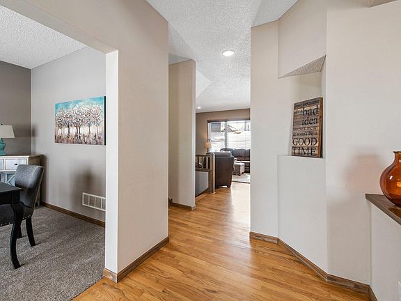 Welcome to 9425 Longridge Court in the popular and quickly growing Elko New Market. Immediately when you step into this home, you'll notice the vaulted ceilings and immense amount of natural light throughout. This home's main floor features an office space, a formal dining room, open concept living room and kitchen, laundry room and a main floor bedroom and bathroom, making this a 1-level living home. Some updates made in 2023 include all new carpet, fresh paint, brand new granite kitchen countertops and a new glass tile backsplash. The upper level is home to the large primary suite and 2 additional bedrooms with convenient access to the additional upper level full bathroom. You'll love the potential of the unfinished basement, adding lots of options for additions. This home is located in a cul-de-sac on the beautiful Boulder Pointe Golf Course's hole 17. Lakeville or New Prague schools. This one will go fast - schedule a showing today!