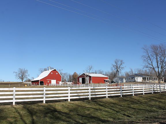 LISTING #47640 17 acres and new 4000 sq ft home for sale in Cameron MO. Ranch style home with 5 bedrooms, 5 bathrooms and 9' ceiling throughout the home. Full basement has 9' walls. This home features a gourmet kitchen, bedrooms with attached bathroom & walkin closets. The master suite is fit for a king! Other features include a 30x30 attached garage, full length covered porch, 2 patios with stamped cement & 50 year shingles. This is a very custom home, second to none! 50x50 machine shop with cement & elect. 50x40 100 year old 2 story stock barn with new windows, elect, roof & siding. Fenced pasture, water paddocks & hard top road only 5 minutes to I-35. Less than 1 hour to Kansas City.