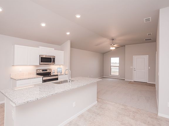 This 1,450 square foot affordable new home can be your next step to investing in your future. The Kenlie exterior welcomes you with a front porch, craftsman-style columns, brick features and an open concept floor plan inside with 3 bedrooms and 2 bathrooms. This quality new home is complete with a two-car garage, master walk-in closet, a kitchen island for your latest gourmet creation, and a front and back yard with a covered patio to enjoy the fresh air.