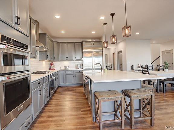 Newer home with a HUGE yard in West Arvada with a 2.25% assumable VA loan saving a buyer roughly $1,600 a month! This sprawling 5-bedroom, 4-bathroom home offers luxury living at its finest. The open-concept main floor boasts tall ceilings, a chef’s kitchen with 2 convection ovens, gas cooktop, massive dining island, large walk-in pantry, and expansive windows framing lovely city light views. The spacious great room flows seamlessly to a covered deck with built-in heaters, perfect for year-round outdoor entertaining, all while overlooking the enormous backyard. Versatile floor plan includes a main floor bedroom with an adjacent full bathroom, an office/project room with private deck access, and an unfinished walkout basement featuring high ceilings and sunlit 8-foot sliding doors, ideal for adding in-law quarters with a separate entrance or whatever you desire. Upstairs, you’ll find 4 more bedrooms and 3 full bathrooms, including an impressive primary suite with lovely views, a spa-like en suite bath, and generous walk-in closet. A perfect retreat. The backyard is fully landscaped and features a covered patio, an oversized uncovered patio and lots of room to garden and play. All of this and it's perfectly situated on a cul-de-sac in a wonderful neighborhood offering a vibrant mix of shopping, dining and entertainment. Enjoy over 13 miles of trails, 93 acres of on-site open space, and it’s all surrounded by 11,500+ acres of protected public lands that await your discovery. There’s also a National Wildlife Refuge next door, a protected natural habitat that’s home to deer, elk, owls, white pelicans and more. Call listor for details on the assumable VA loan.