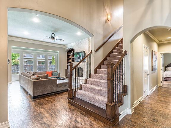 Great find Bixby schools! Sought after floorplan. Home built by Rick Dodson. Located in cul de sac. 5 bed/4.5 bath with gameroom & bonus room (perfect for theatre). Fabulous kitchen w/double ovens & 6 burner range and rock accent wall. Hardwood floors & granite through-out. 2 bedrooms located on the first floor. 3 bedrooms and two game rooms up! Wide stairway with two dramatic two story entry.